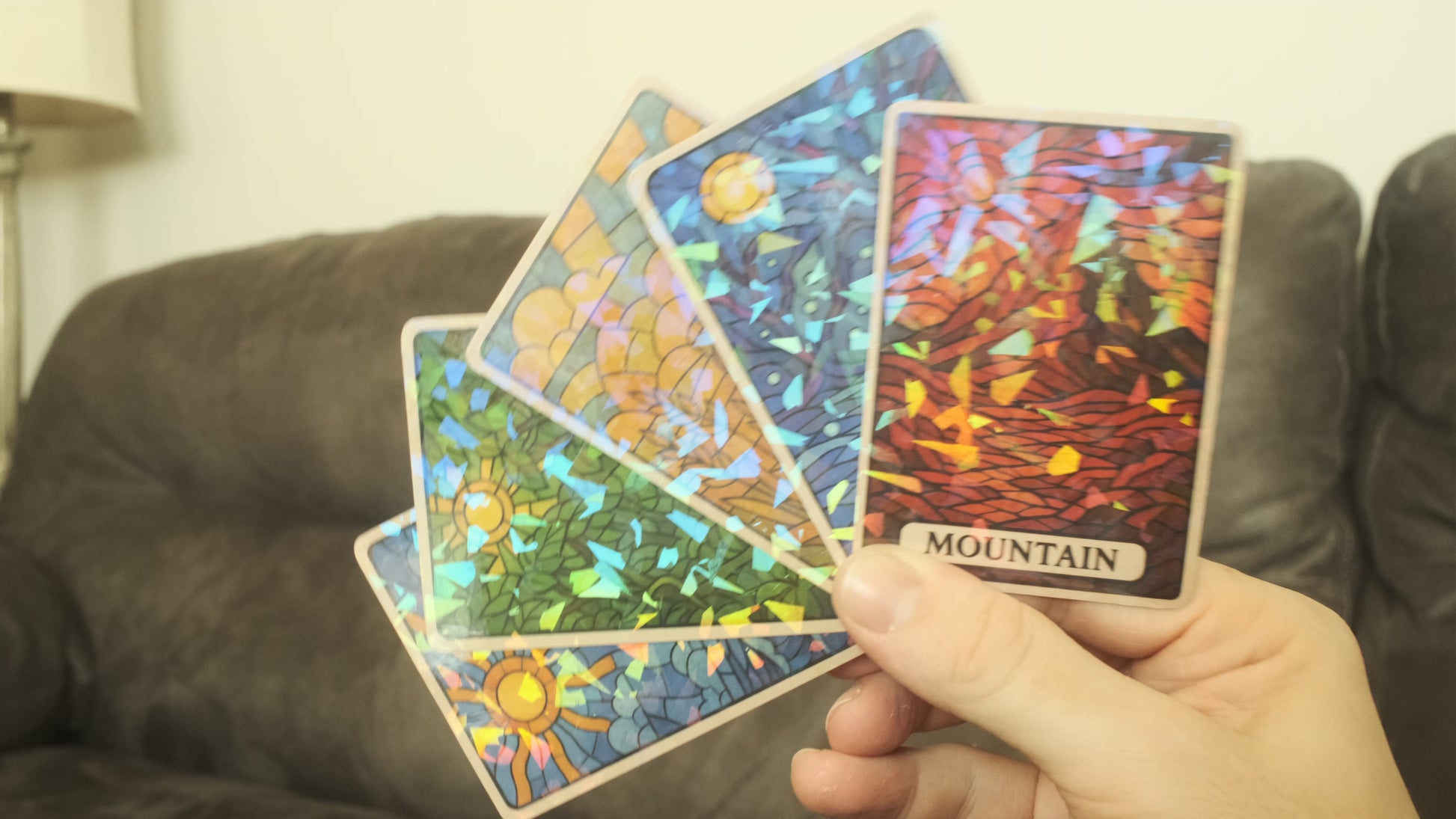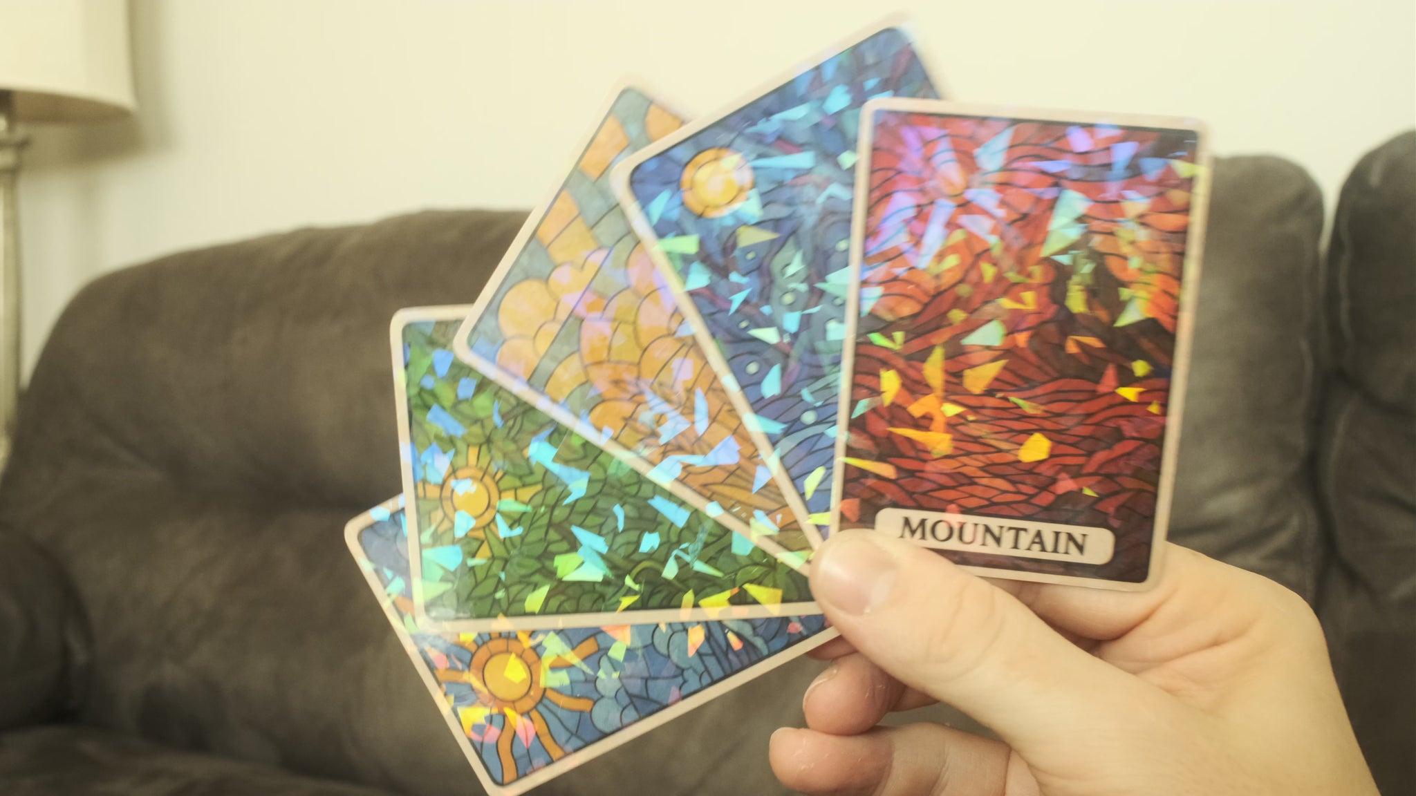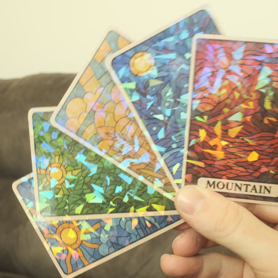 Add a magical, personal touch to your battlefield with this set of 5 land proxies featuring my stained glass designs. These tokens are professionally printed on thick, premium cardstock and carefully hand-prepared to ensure each one is as unique as the art it features.